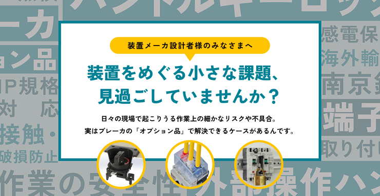 下記お申し込みフォームにて会員情報のご入力とアンケートにお答えいただくと、『ブレーカオプション品もっと知りたいQ&Aガイド』及び製品資料がダウンロードいただけます。その他、弊社製品に関するお悩みごとや疑問点がございましたら、フォーム内の「設問05」記入欄からお問い合わせください。